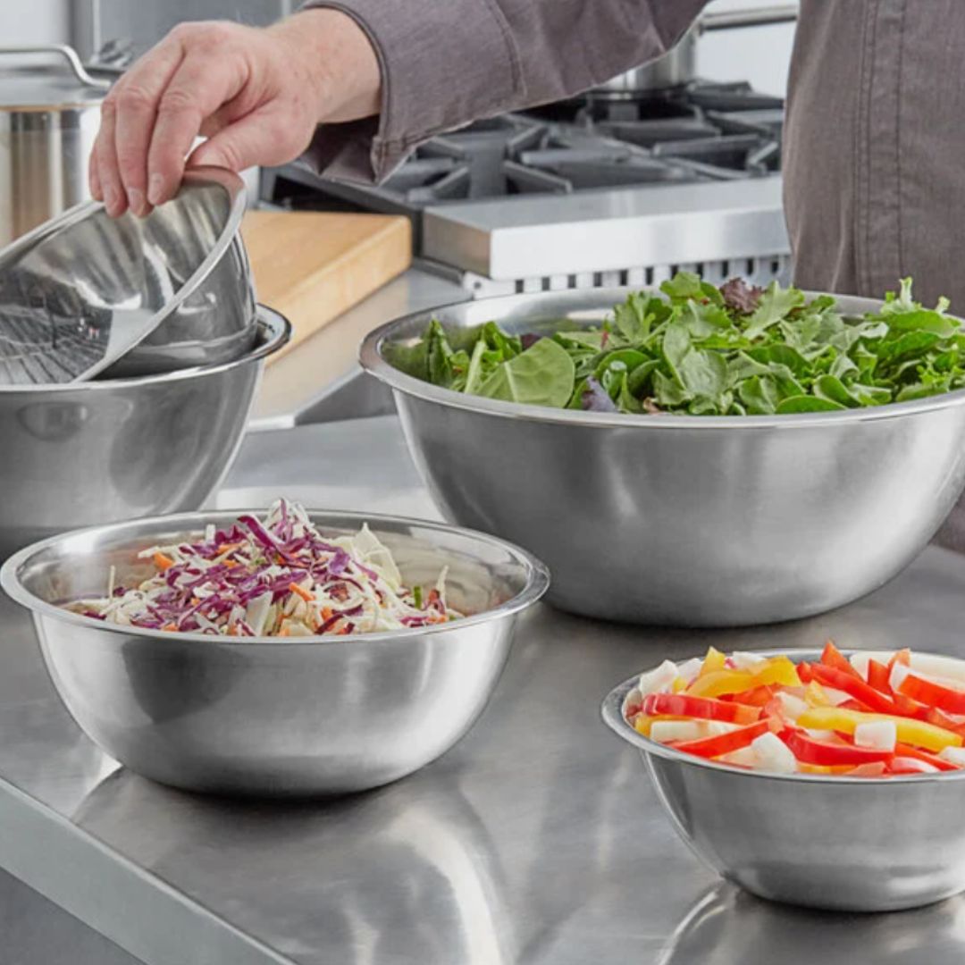 Containing a total of 3 pieces with mixing bowls of varying size, you can accommodate countless applications in your kitchen. From whipping up a quick vinaigrette to mixing a large batch of pastry dough, there is a bowl size for it all. This set includes 3, 5, and 8 qt. mixing bowls, equipping you for every baking and cooking application.